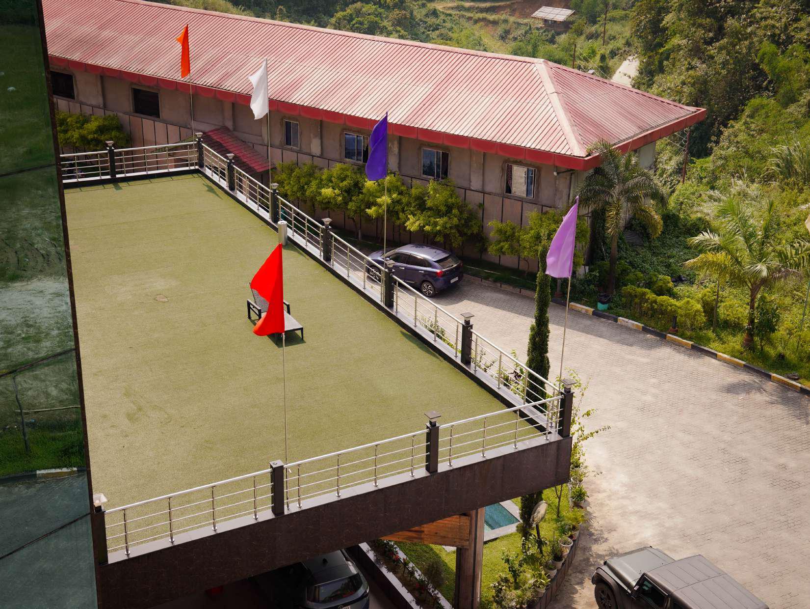 Lush green outdoor space surrounded by serenity — ideal for cultural functions, receptions, and starlit celebrations.