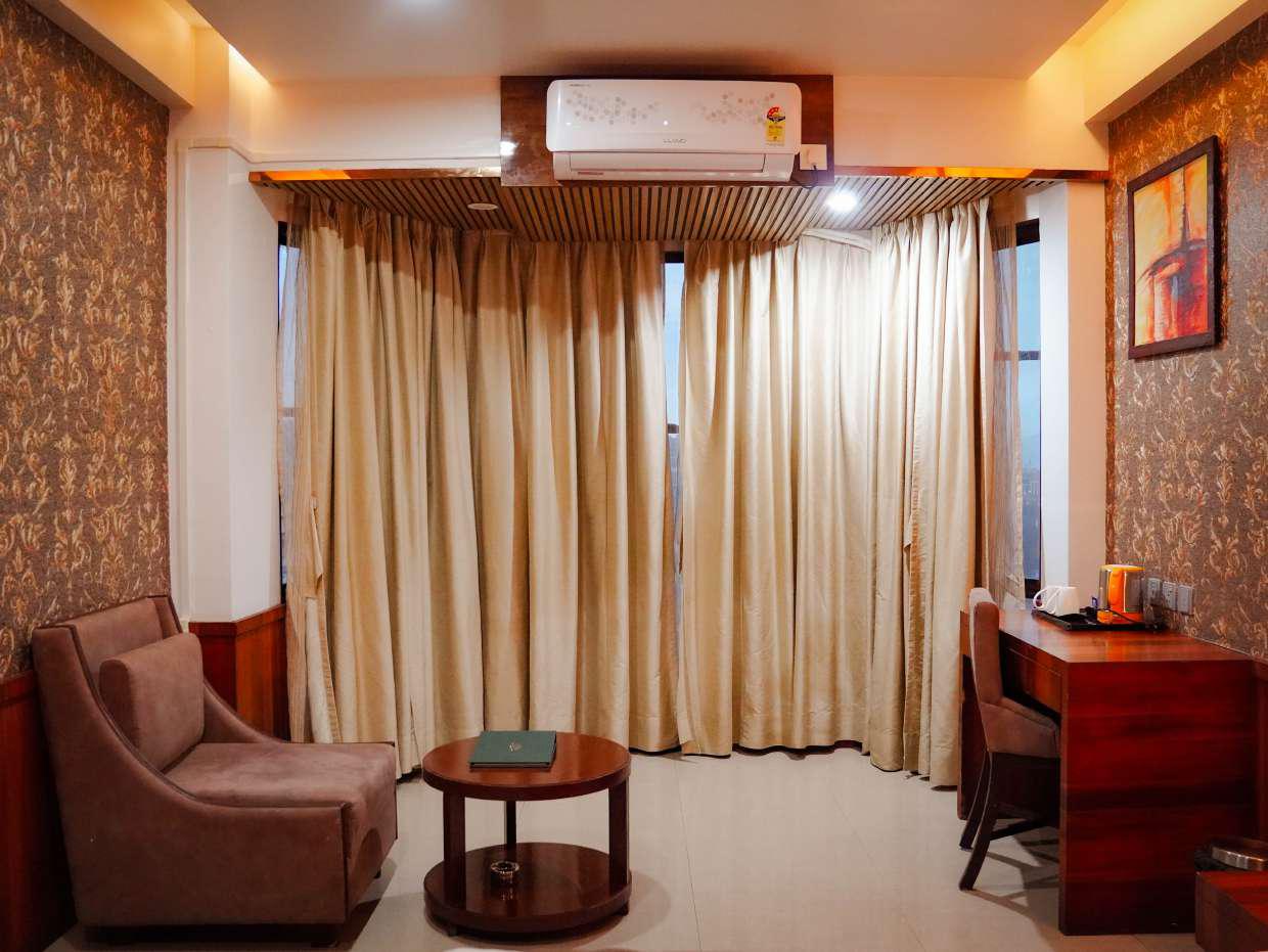 The Luxury City View Room at Donyi Polo International Hotel, Itanagar, delivers a sophisticated city-living experience with stunning skyline vistas. Each room features contemporary design, spacious interiors, and thoughtfully selected furnishings for maximum comfort. Guests can unwind while admiring the glittering cityscape or indulge in our signature hospitality services. Ideal for business and leisure travelers, this category blends comfort with class in a setting that reflects the vibrant heart of Itanagar. Discover the essence of urban luxury in Arunachal Pradesh with unmatched service, style, and serenity — only at Donyi Polo International.
